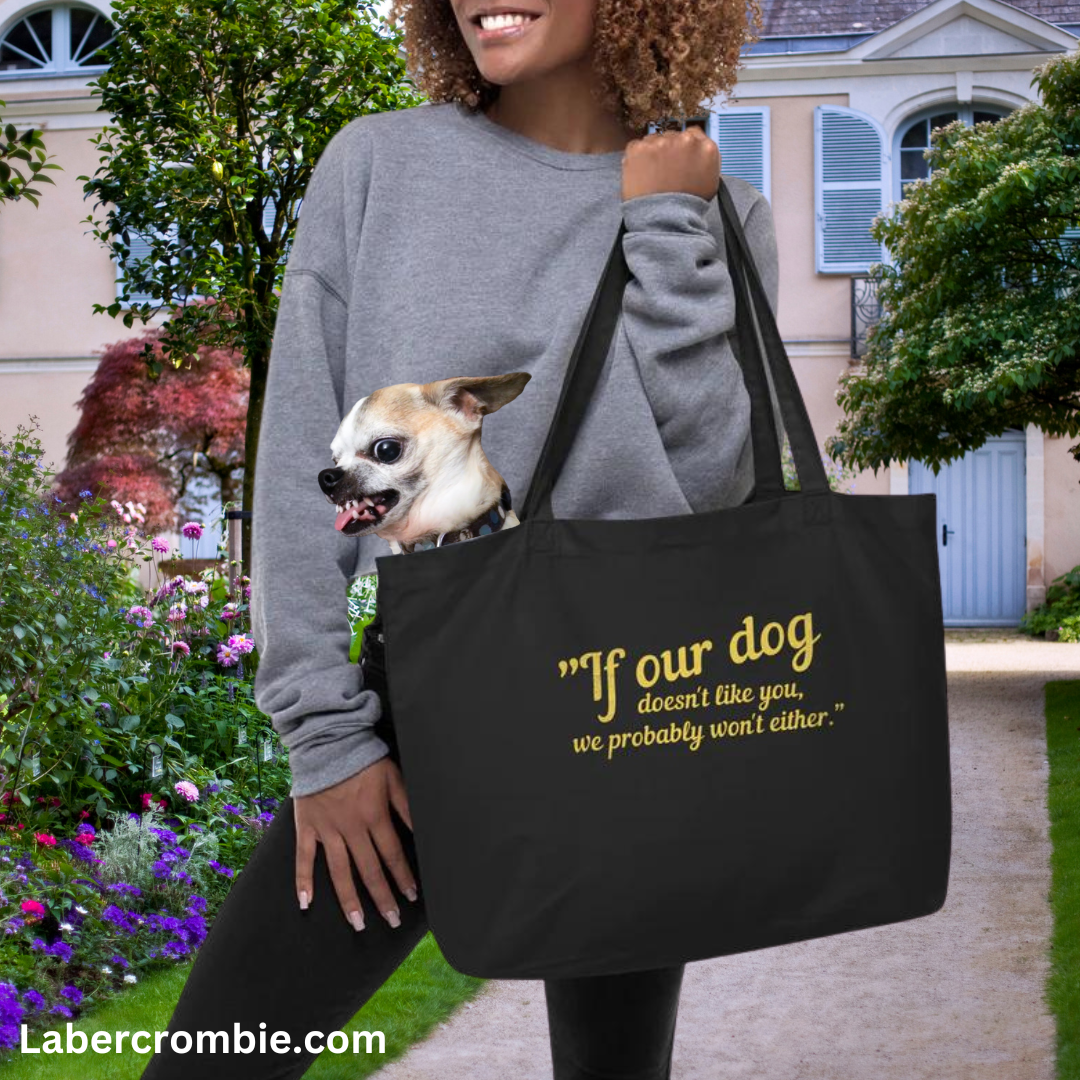 Our Dog Doesn't Like You Large organic tote bag